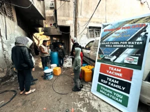 To address the lack of safe drinking water, Iltizam Relief Society has installed two solar-powered systems to provide electricity for pumping water from deep wells in Gaza City.