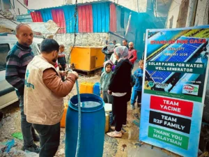 To showcase the tangible impact of your donations, here are images depicting the installation and functioning of solar panels for clean water initiatives in Gaza.