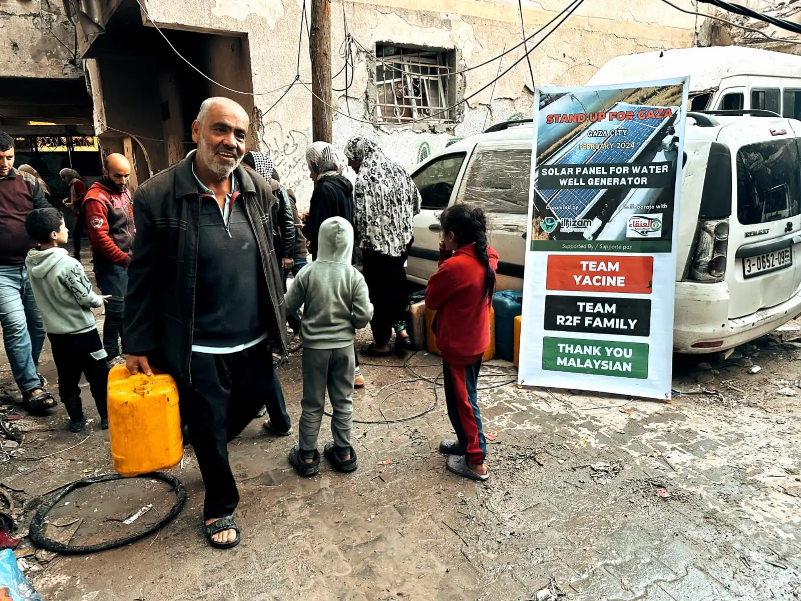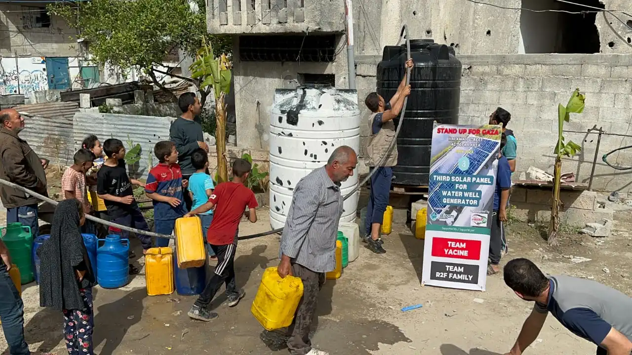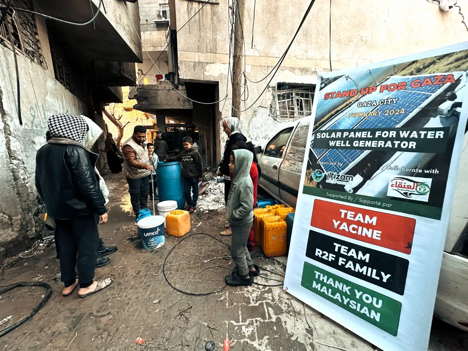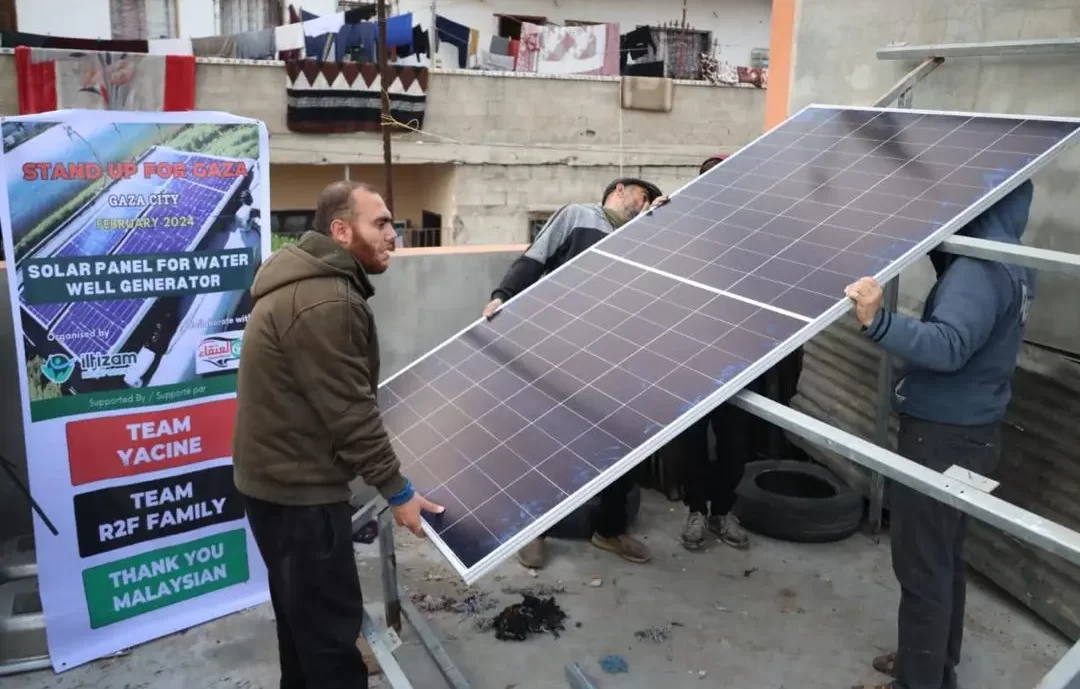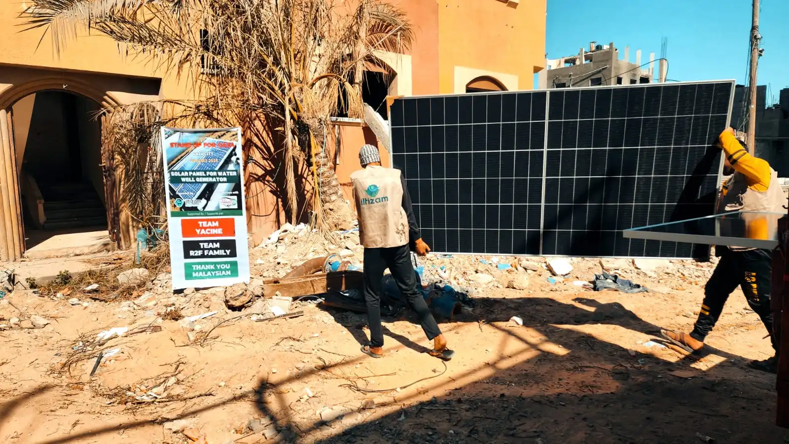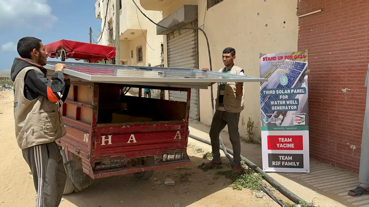 To showcase the tangible impact of your donations, here are images depicting the installation and functioning of solar panels for clean water initiatives in Gaza.