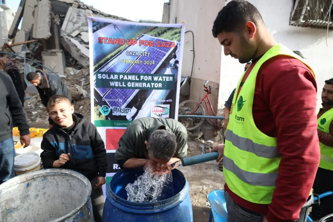 To address the lack of safe drinking water, Iltizam Relief Society has installed two solar-powered systems to provide electricity for pumping water from deep wells in Gaza City.