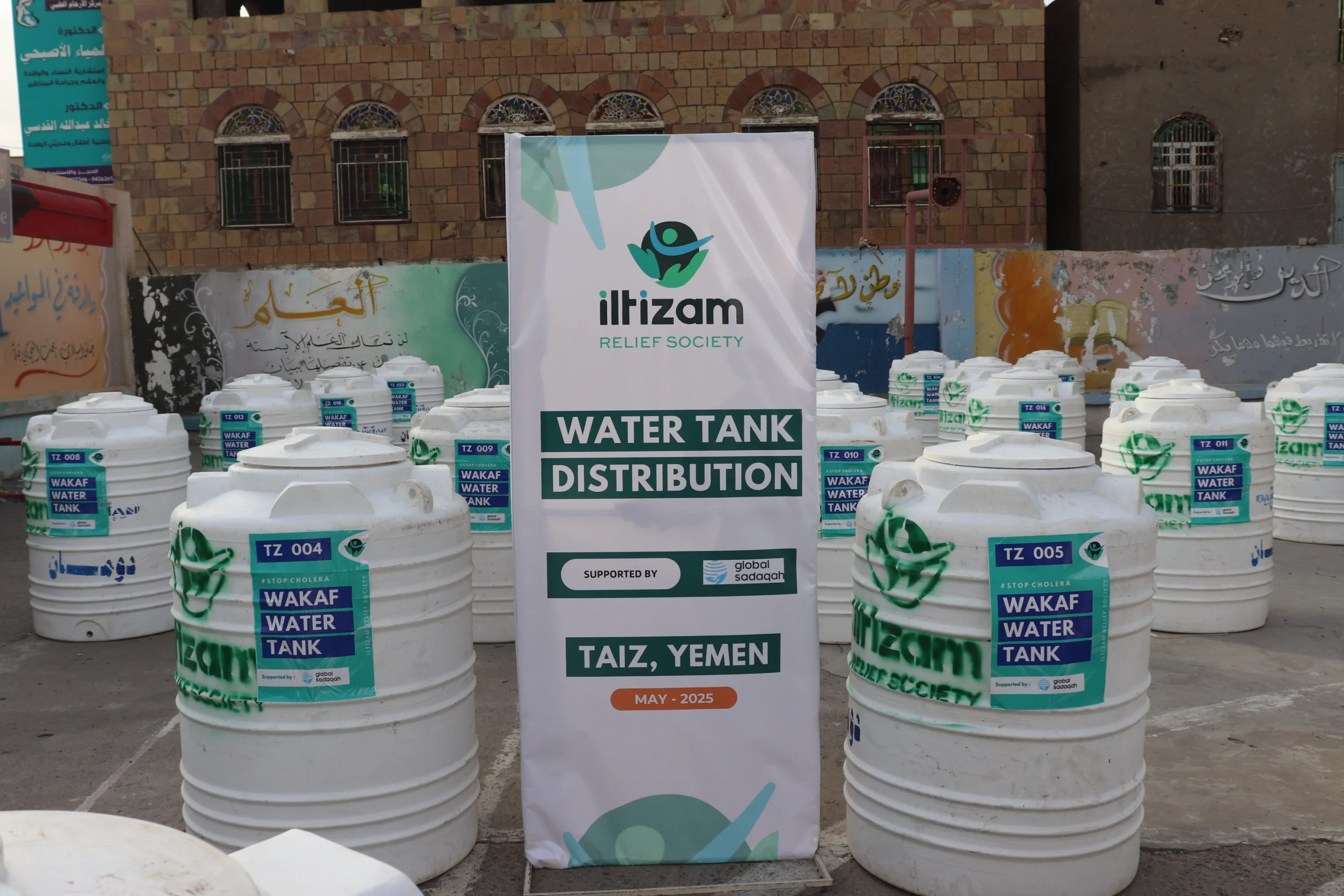Addressing the water crisis in Taiz, the Itlizam Relief Society team on the ground installed 54 water tanks in Al-Tamdood villages and neighborhoods sponsored by generous donors, bringing the total of water tanks to 54.